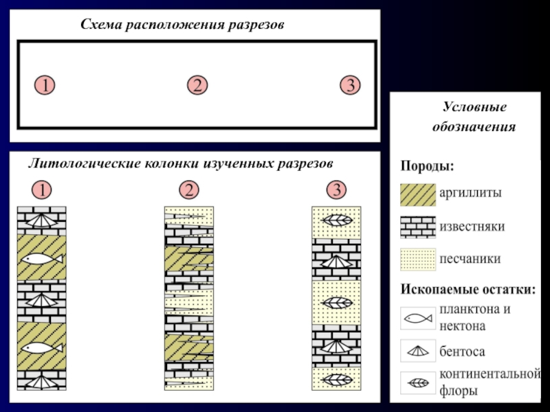 Вертикальная последовательность осадочных пород в разрезе соответствует