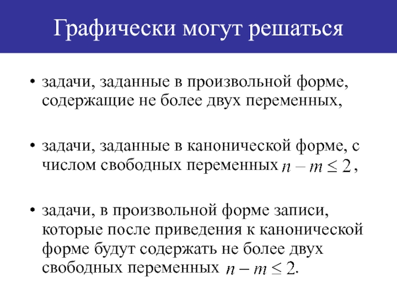 ,задачи, в произвольной форме записи, которые после приведения к канонической форме будут содержать не более двух свободных переменных .