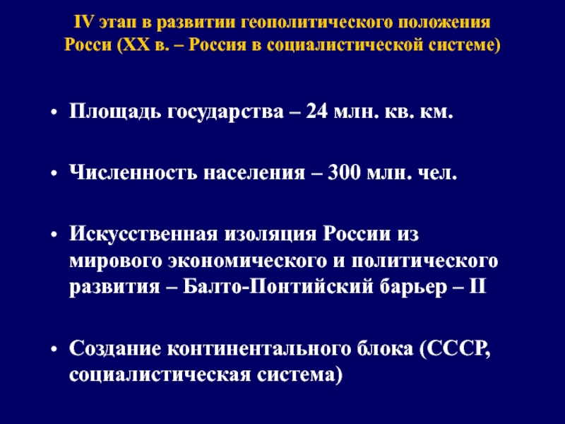 Слайд 10IV этап в развитии геополитического положения Росси (XX в. –