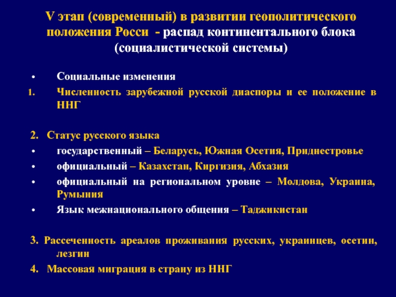 Слайд 20V этап (современный) в развитии геополитического положения Росси - распад