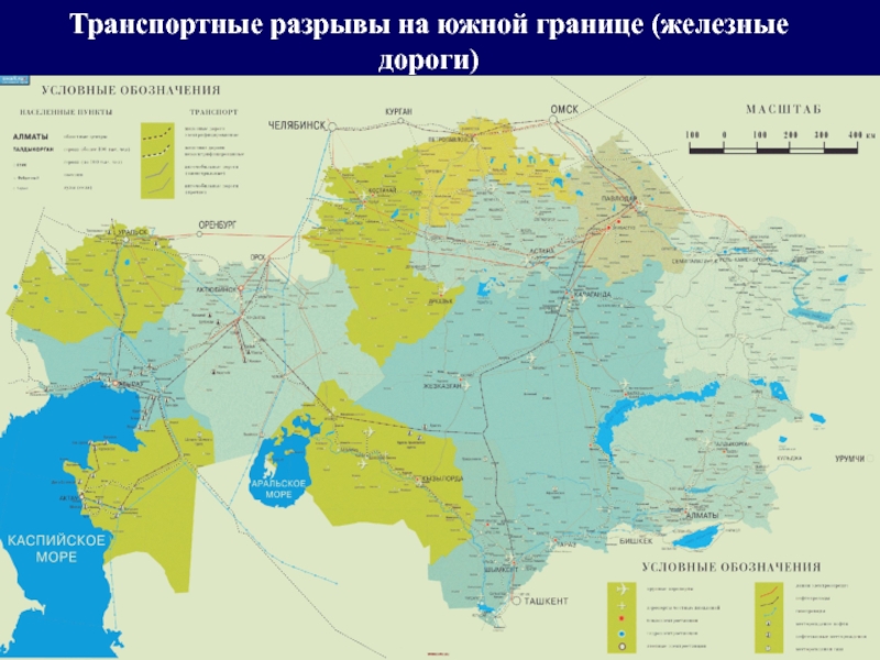 Слайд 17Транспортные разрывы на южной границе (железные дороги)