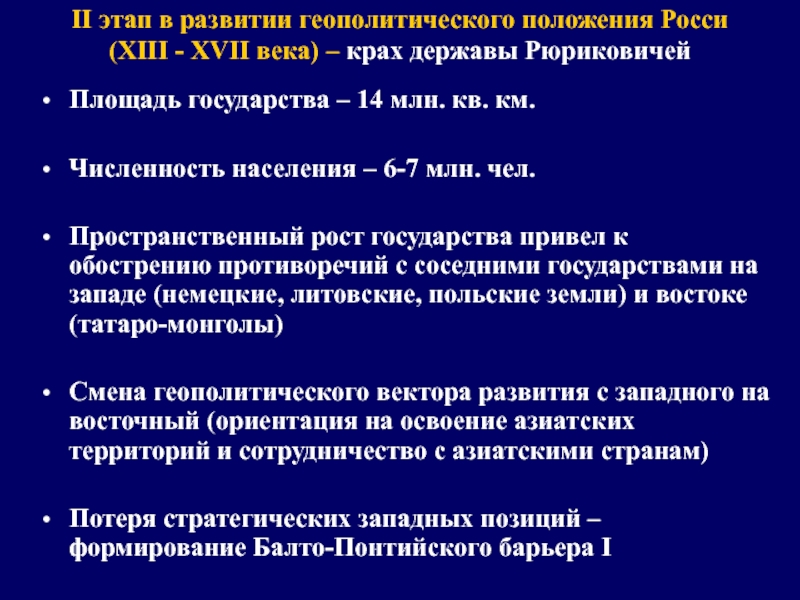 Слайд 5II этап в развитии геополитического положения Росси (XIII - XVII