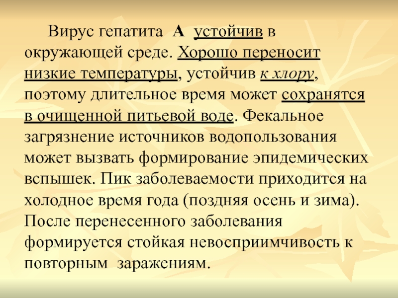 Слайд 60Вирус гепатита А устойчив в окружающей среде. Хорошо переносит низкие