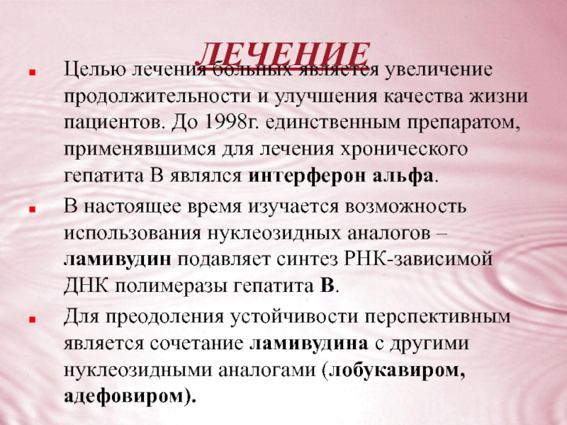 пациентов. До 1998г. единственным препаратом, применявшимся для лечения хронического гепатита