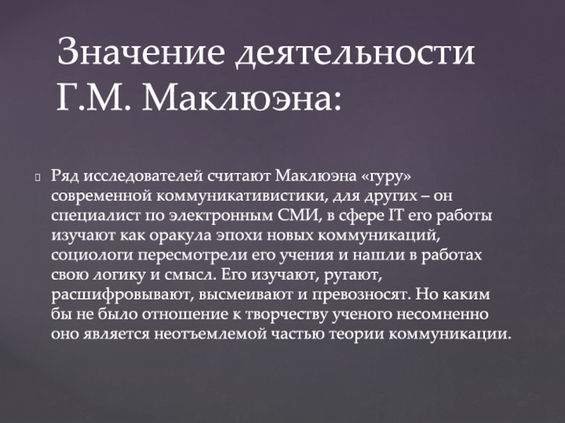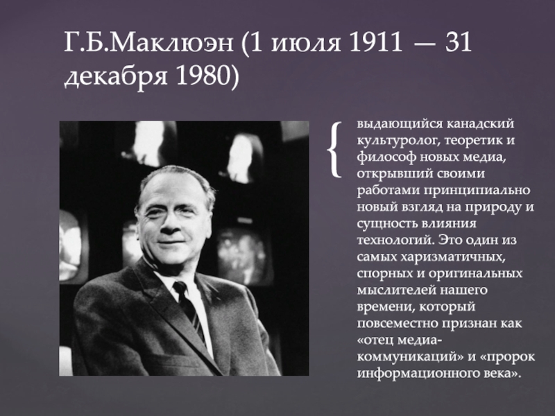 Г.Б.Маклюэн (1 июля 1911 — 31 декабря 1980)