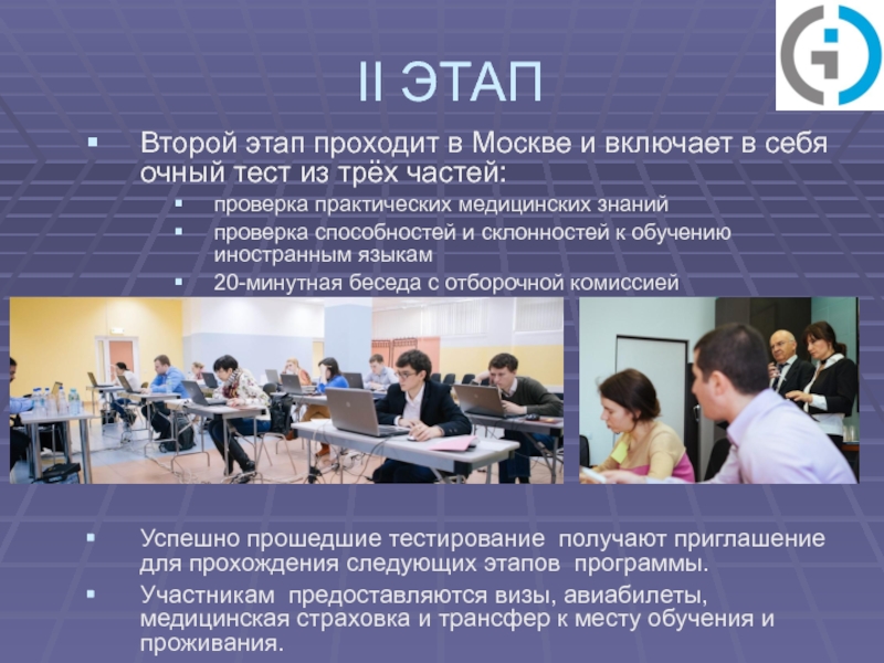Комиссия рассматривает присланные документы и по результатам приглашает кандидатов на второй этап - очный экзамен, который будет походить в Москве в экзаменационном центре