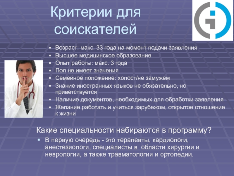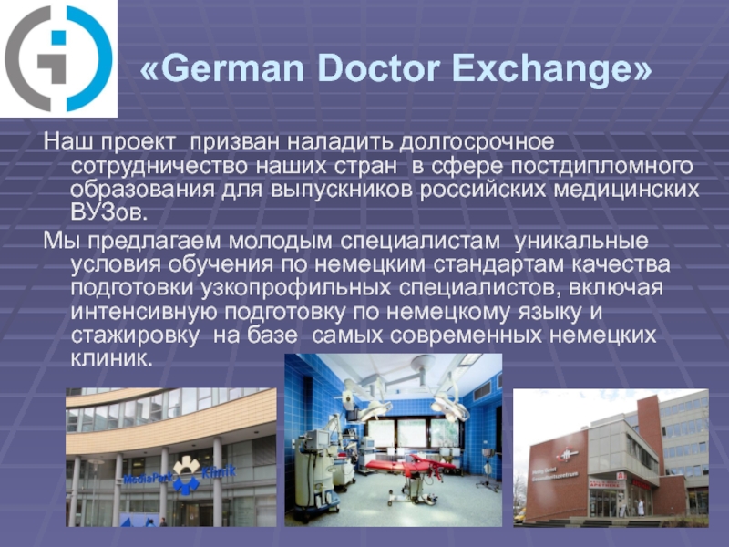 предлагаем молодым специалистам уникальные условия обучения по немецким стандартам качества подготовки узкопрофильных специалистов, включая интенсивную подготовку по немецкому языку и стажировку на базе самых современных немецких клиник.
