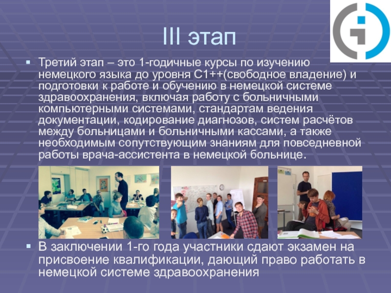 В заключении 1-го года участники сдают экзамен на присвоение квалификации, дающий право работать в немецкой системе здравоохранения
