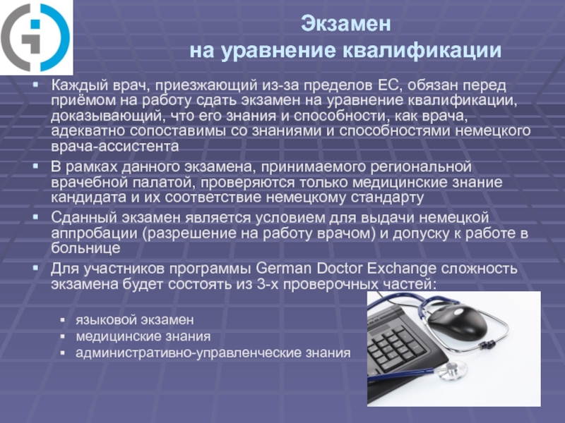 Для участников программы German Doctor Exchange сложность экзамена будет состоять из 3-х проверочных частей: