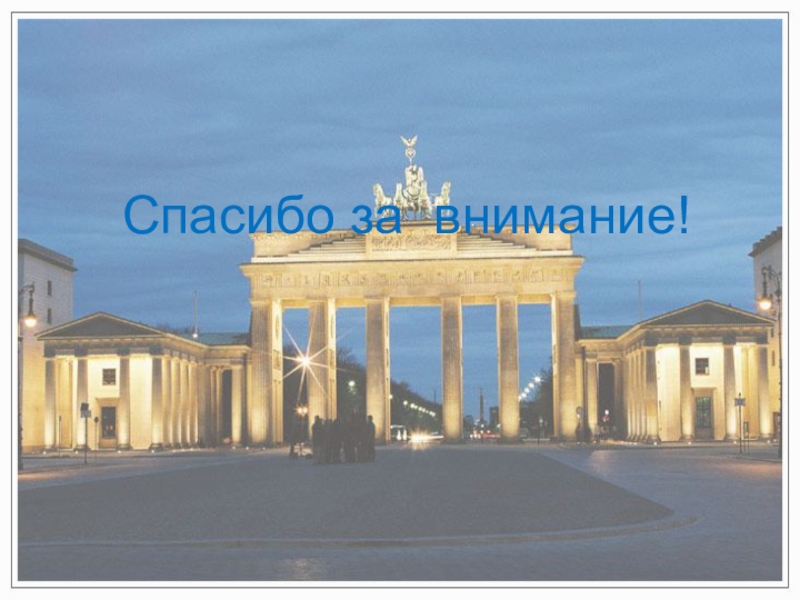 Слайд 14Среди памятников истории и архитектуры необходимо отметить Бранденбургские ворота в Берлине