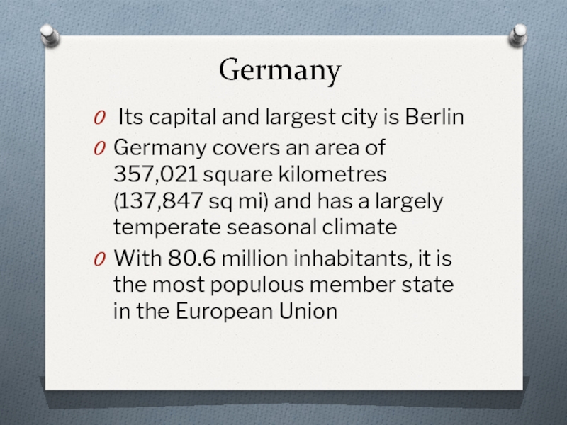 a largely temperate seasonal climateWith 80.6 million inhabitants, it is the most populous member state in the European Union