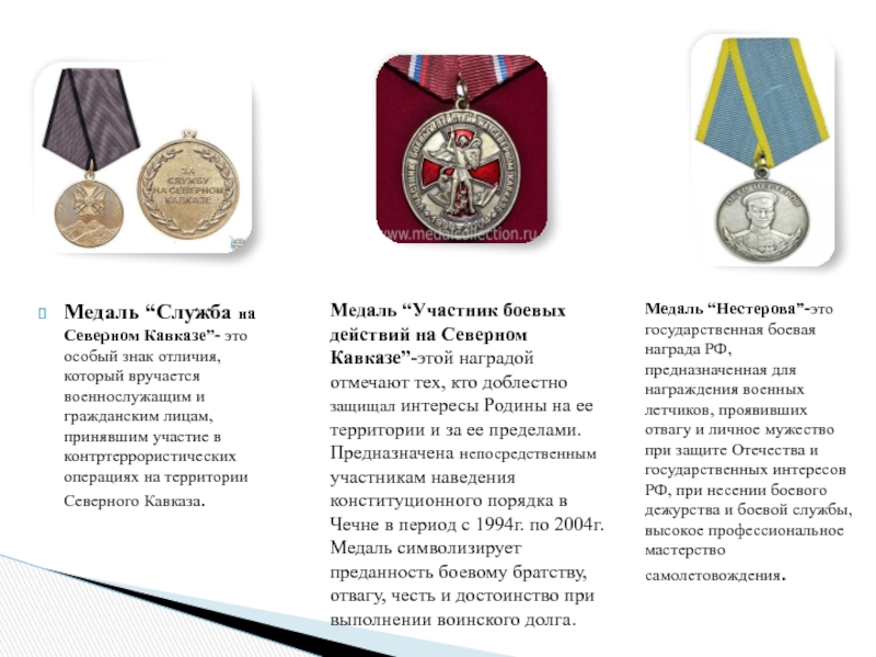 Медаль “Служба на Северном Кавказе”- это особый знак отличия, который вручается военнослужащим и гражданским лицам, принявшим участие в контртеррористических операциях на территории Северного Кавказа.