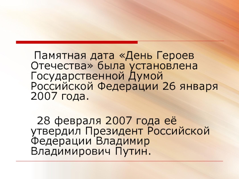 Памятная дата «День Героев Отечества» была установлена Государственной Думой Российской Федерации 26 января