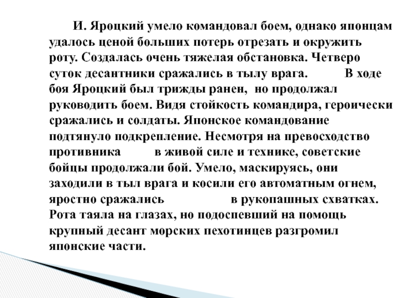 Слайд 25 И. Яроцкий умело командовал боем, однако японцам удалось ценой больших