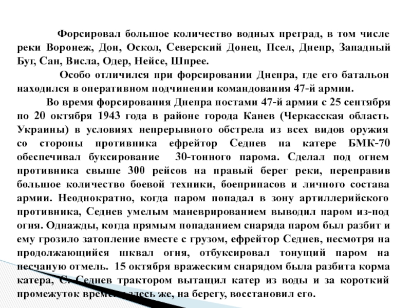 мужество моториста Седнева служат примером для всего личного состава понтонеров