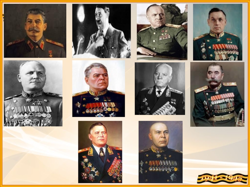 И.В.СталинА.ГитлерГ.К.ЖуковскийК.К.РокоссовскийИ.С.КоневА.М.ВасилевскийК.Е.ВорошиловС.М.БуденныйА.И.ЕременкоС.К.Тимошенко