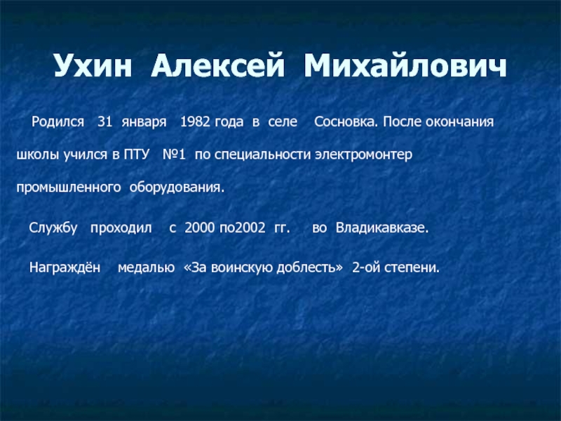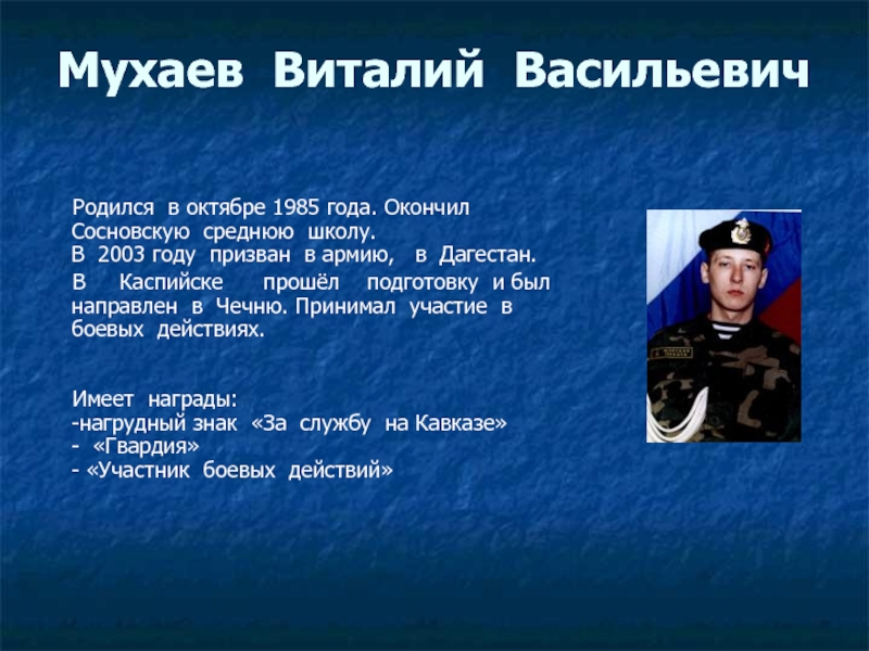 селе Лопуховка. В ноябре 2003 года был призван в армию.