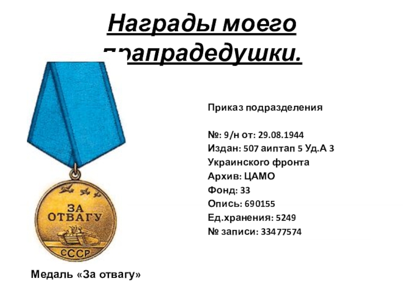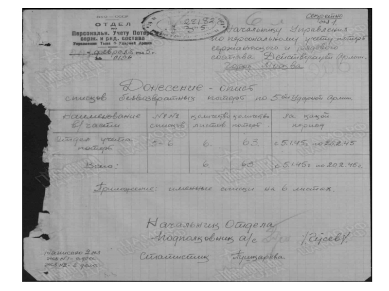 Название источника донесения ЦАМО