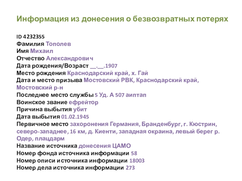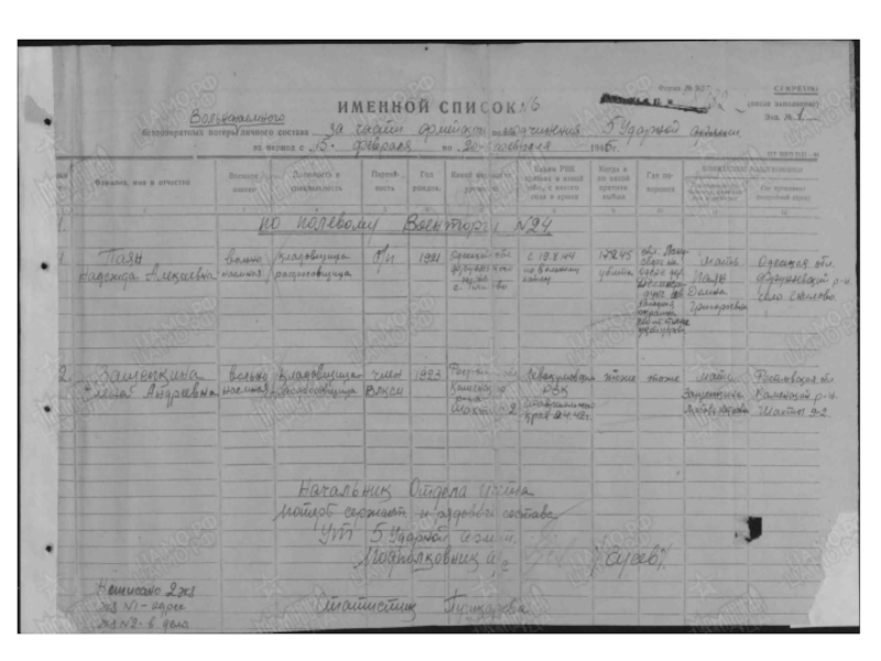 Дата выбытия 01.02.1945