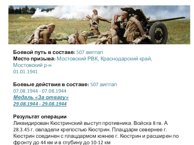 призыва Мостовский РВК, Краснодарский край, Мостовский р-нПоследнее место службы 5 Уд. А 507 аиптап