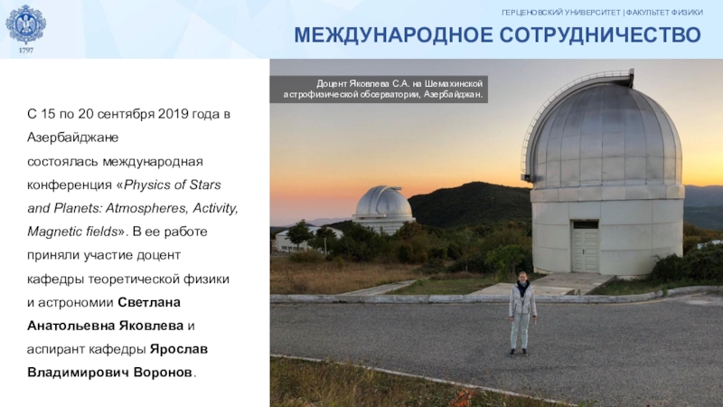 fields». В ее работе приняли участие доцент кафедры теоретической физики и астрономии Светлана Анатольевна Яковлева и аспирант кафедры Ярослав Владимирович Воронов.
