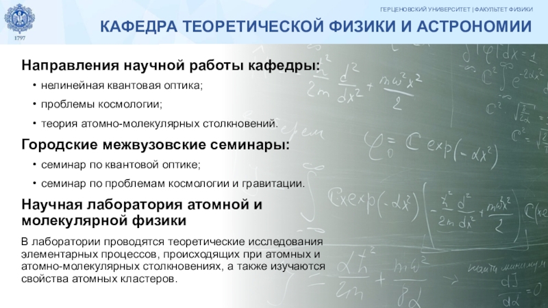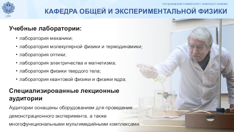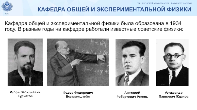 Слайд 10Кафедра общей и экспериментальной физики была образована в 1934 году.