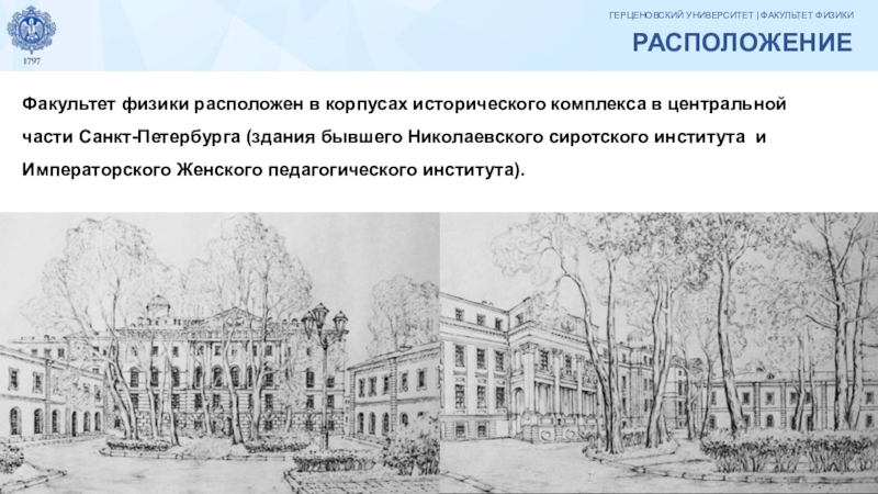 Слайд 3Факультет физики расположен в корпусах исторического комплекса в центральной части
