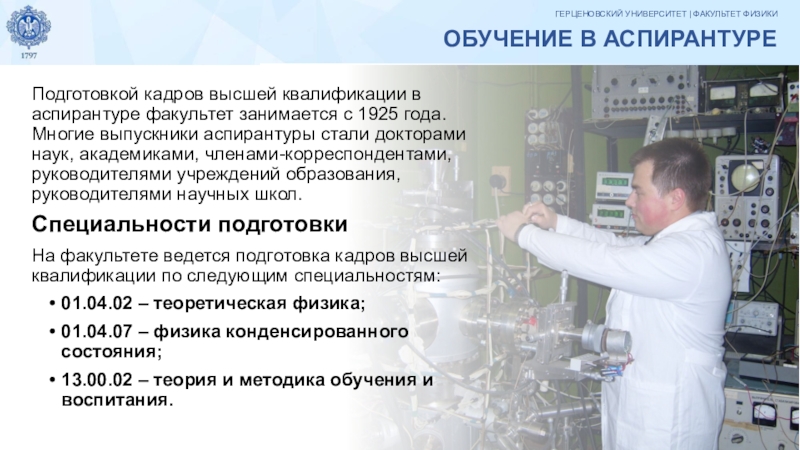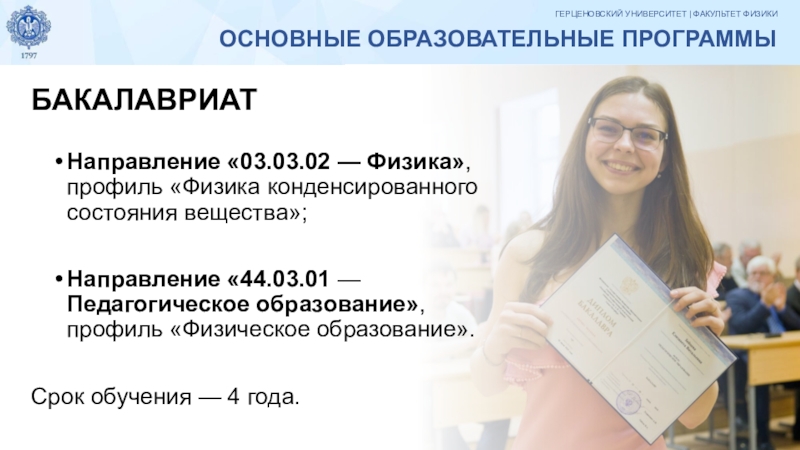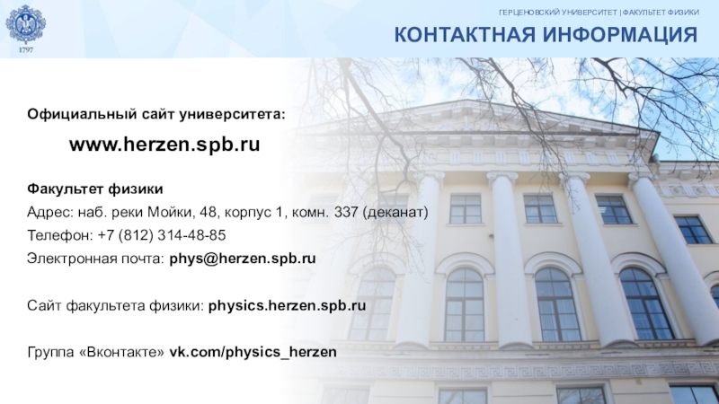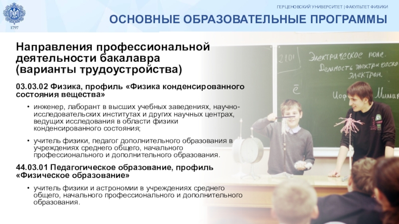 преподавателях и возможностях, которые откроются перед вами, если вы решите стать студентом факультета физики Герценовского университета.