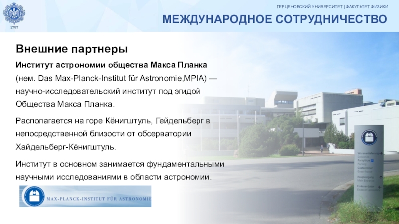 für Astronomie,MPIA) — научно-исследовательский институт под эгидой Общества Макса Планка.