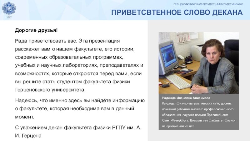 С уважением декан факультета физики РГПУ им. А.И. Герцена
