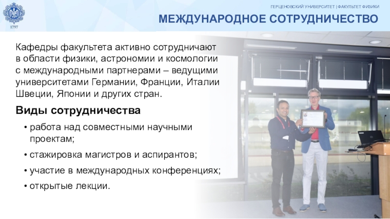 Кафедры факультета активно сотрудничают в области физики, астрономии и
