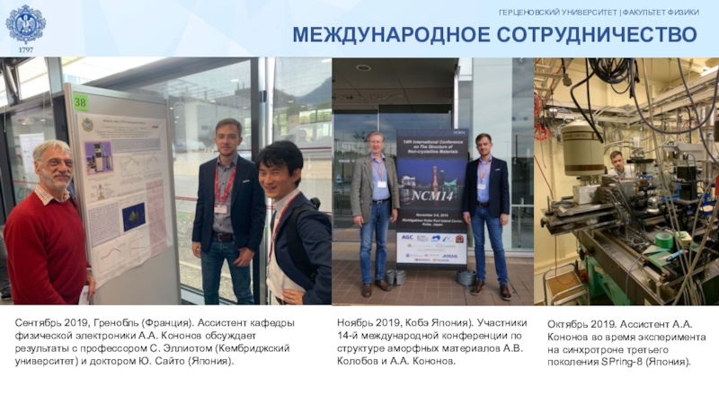 Ноябрь 2019, Кобэ Япония). Участники 14-й международной конференции по структуре аморфных материалов А.В. Колобов и А.А. Кононов.