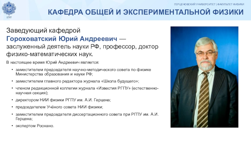 Гороховатский Юрий Андреевич — заслуженный деятель науки РФ,