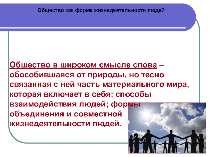 Слайд 2- Общество как форма жизнедеятельности людей