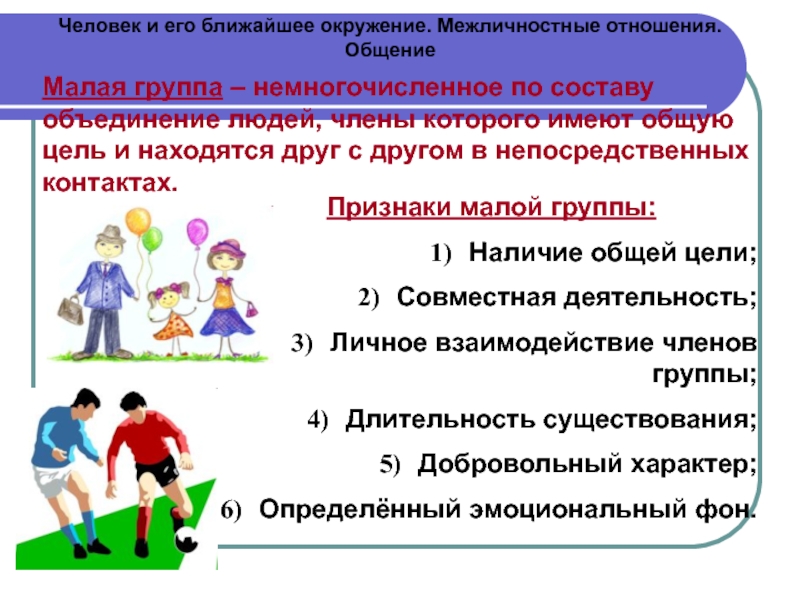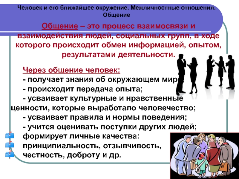 - Человек и его ближайшее окружение. Межличностные отношения. Общение