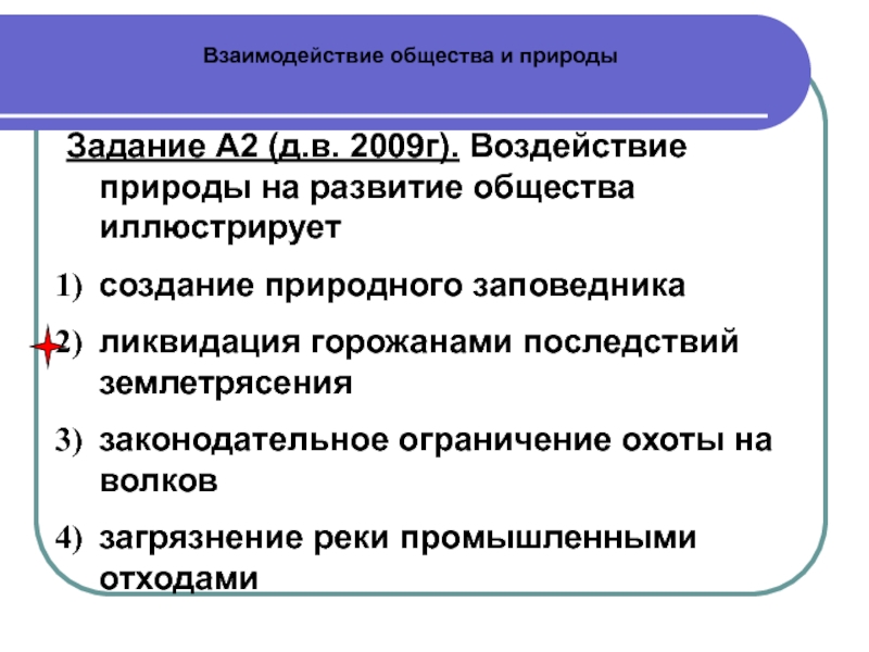Задание А2 (д.в. 2009г). Воздействие природы на