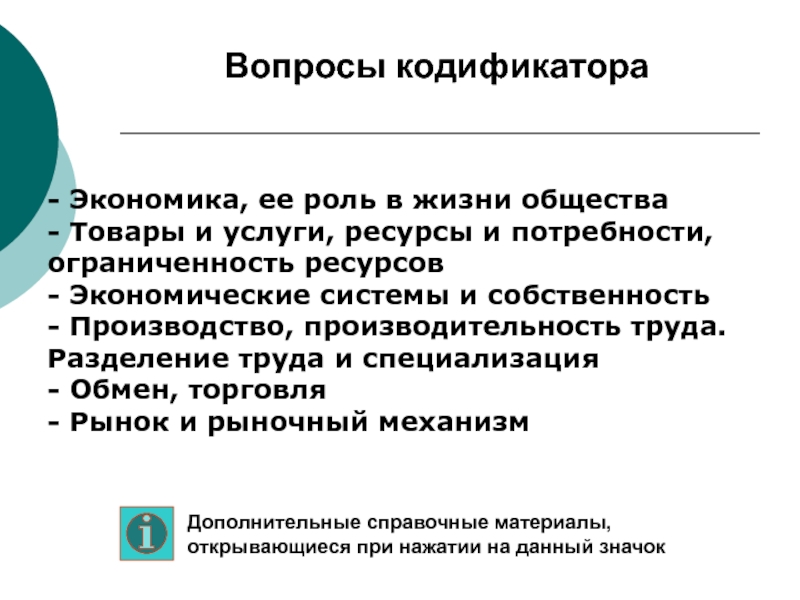 Дополнительные справочные материалы, открывающиеся при нажатии на данный значок