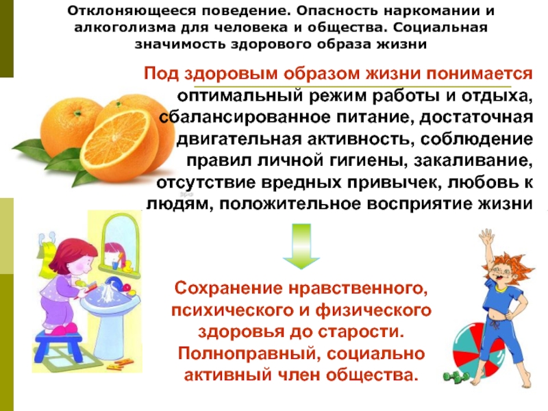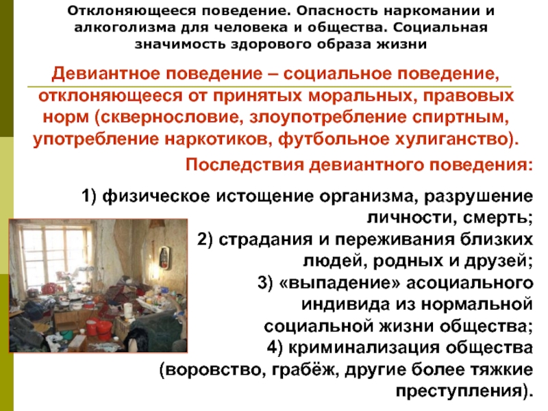 нормы- Отклоняющееся поведение. Опасность наркомании и алкоголизма для человека и общества. Социальная значимость здорового образа жизни