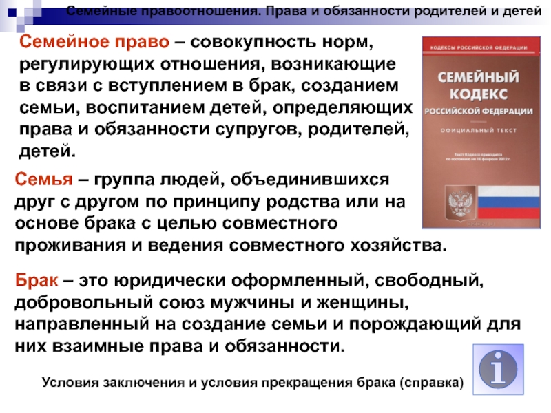 - Семейные правоотношения. Права и обязанности родителей и детей