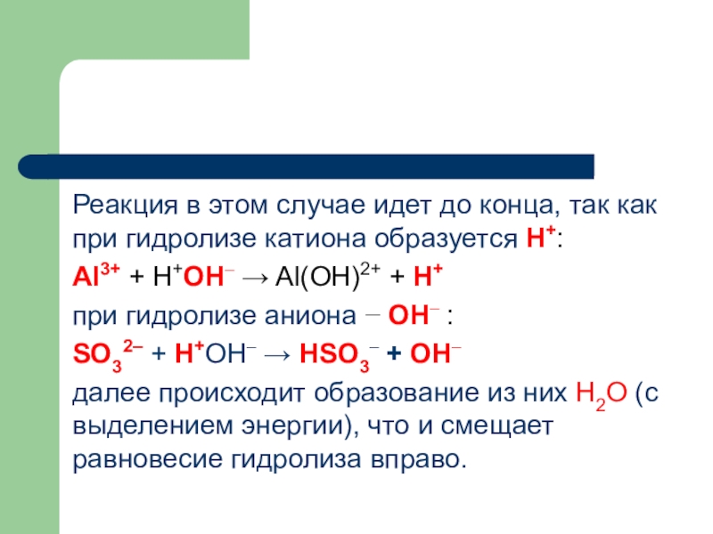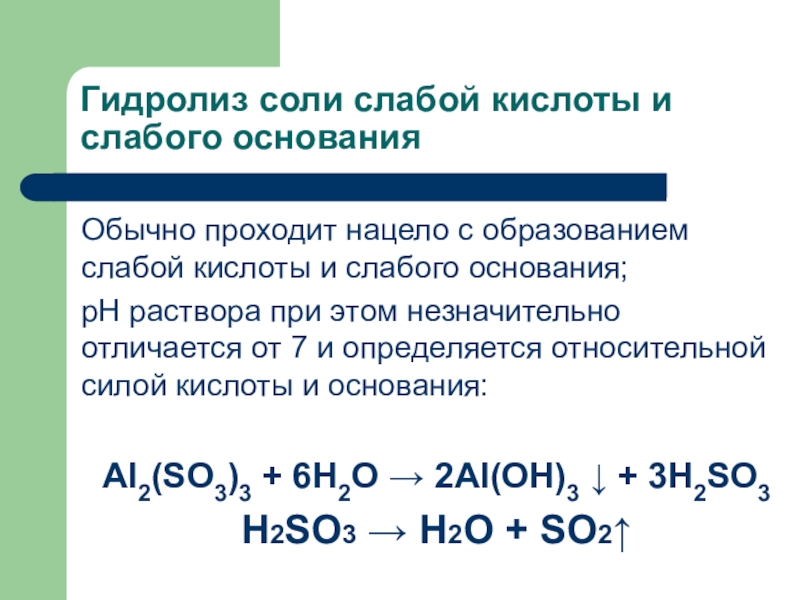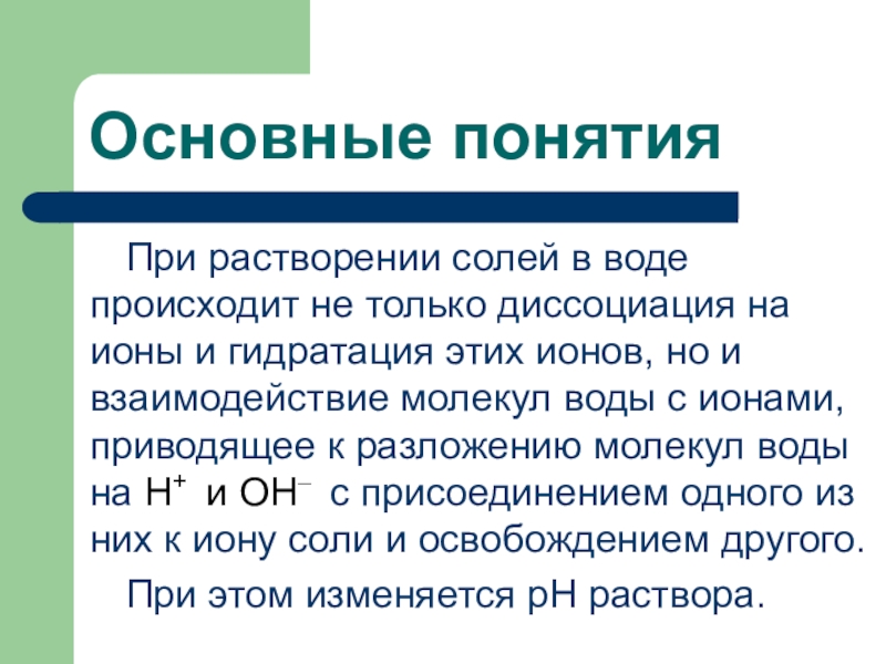 воды с ионами, приводящее к разложению молекул воды на Н+ и ОН– с присоединением одного из них к иону соли и освобождением другого.При этом изменяется рН раствора.