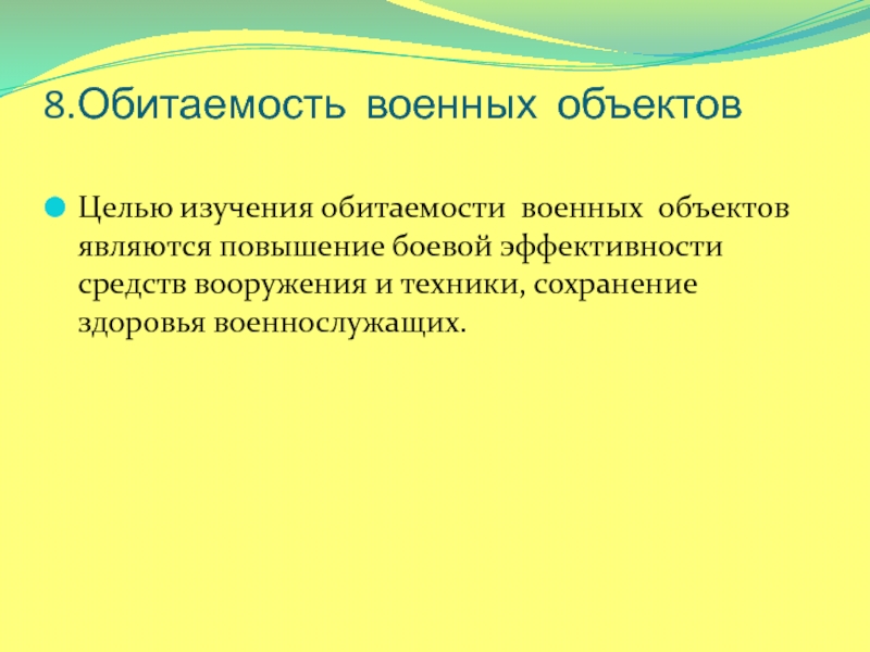 Целью изучения обитаемости военных объектов являются повышение боевой