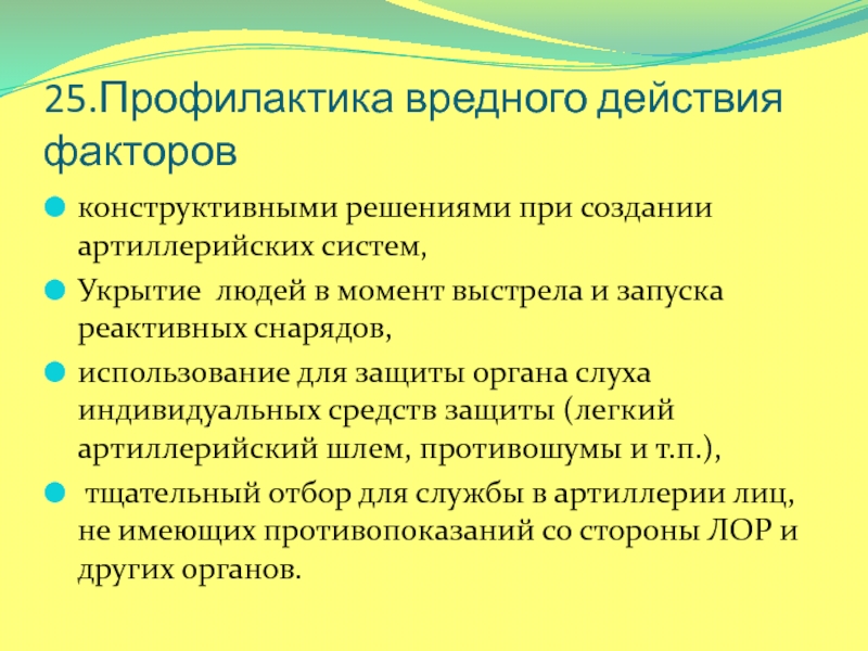 тщательный отбор для службы в артиллерии лиц, не имеющих противопоказаний со стороны ЛОР и других органов.