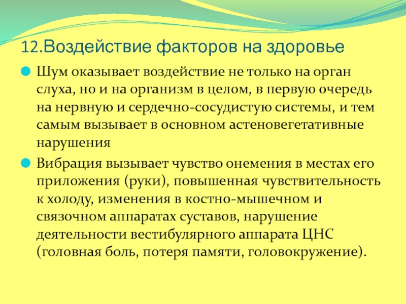 зимой), шум, вибрация, недостаточная освещенность, вредные химические примеси воздуха, большая нагрузка на нервную систему и органы зрения и др.