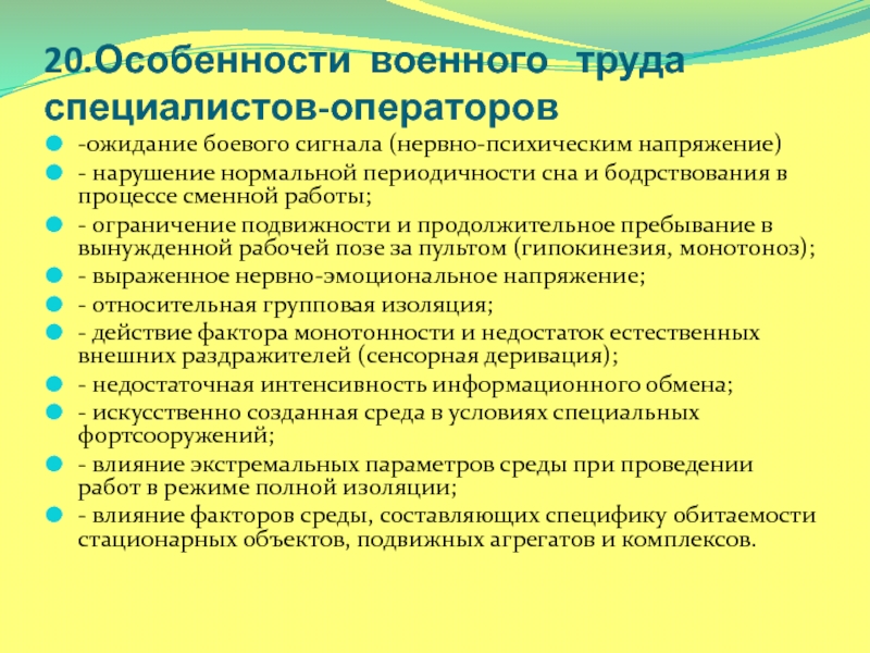 Слайд 2020.Особенности военного труда специалистов-операторов