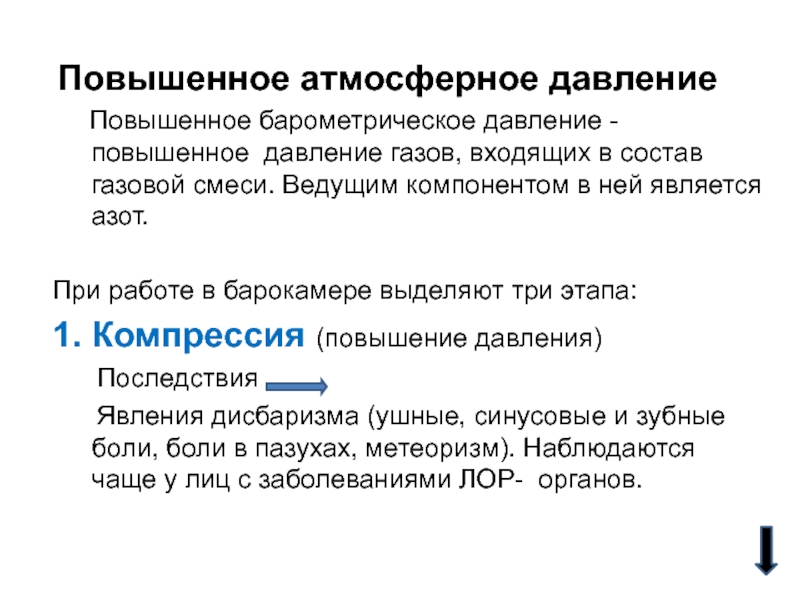 Слайд 11Неблагоприятные факторы при работе в барокамерах