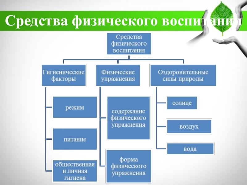 ЗаключениеТаким образом, грамотное использование физических упражнений, естественных сил природы и гигиенических факторов позволяет успешно развивать физические и духовные