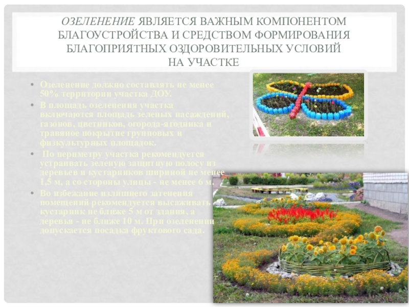 Слайд 8Озеленение является важным компонентом благоустройства и средством формирования благоприятных оздоровительных