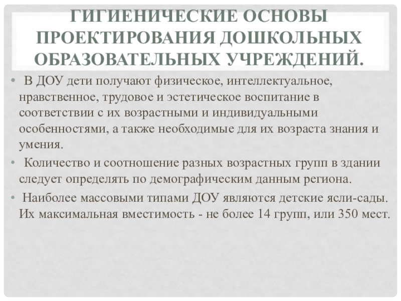 Слайд 11Гигиенические основы проектирования дошкольных образовательных учреждений.
