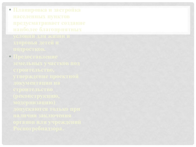 Слайд 4Планировка и застройка населенных пунктов предусматривает создание наиболее благоприятных условий