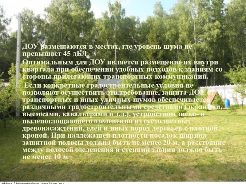 Слайд 6ДОУ размещаются в местах, где уровень шума не превышает 45
